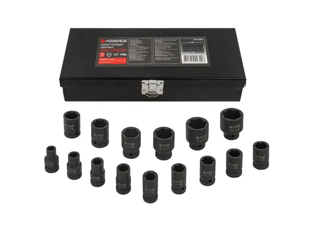 A készlet 15 db 1/2″-es méretű fejjel rendelkezik: