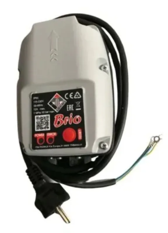 Brio 2000 NEW (press control)elektronikus áramlásszabályzó, áramláskapcsoló készülék, szárazon futtás elleni védelemmel és szárazonfutás esetén automatikusan a Reset gomb megnyomása nélkül többször megpróbálja elindítani a szivattyút. A Brio 2000 NEW áramláskapcsoló azzal a céllal lett kidolgozva, hogy automatizálják az elektromos szivattyúk indítását és leállítását. Nyomásesés és az áramlás leállása esetén a golyóscsap kinyitásakor és elzárásakor a Brio 2000 NEW áramláskapcsoló elektronikusan vezérli az indítási és leállási funkciókat a szivattyún. A száraz futás által okozott sérülések a Brio 2000 NEW áramláskapcsoló alkalmazásával elkerülhetők, mivel ez a kapcsoló víz hiánya esetén leállítja a szivattyút. A Brio 2000 NEW (press control) áramláskapcsoló kiemelkedik kompakt méreteivel és könnyű szerelhetőségével, könnyen és biztonságosan felerősíthető. Az elektromos csatlakozások praktikusan vannak elhelyezve és könnyen hozzáférhetők. Egyszerűen csak követni kell az áramláskapcsoló csatlakozásának a műanyag burkolatra nyomtatott huzalozási jelzéseit. A Brio 2000 NEW áramláskapcsoló kifejlesztésére és gyártása során nagy gondot fordítottak az alapanyagok kiválasztására annak érdekében, hogy elsőosztályú terméket kínáljunk.